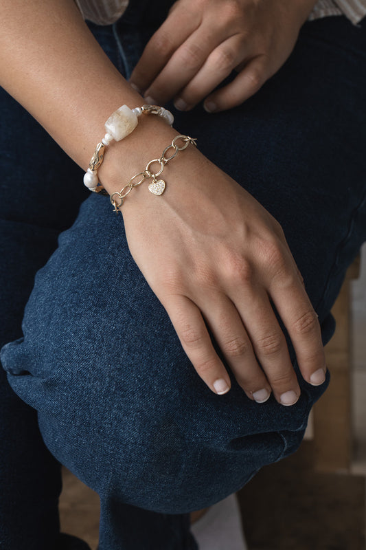 סט 2 צמידים: זריחה זהובה והלב יודע