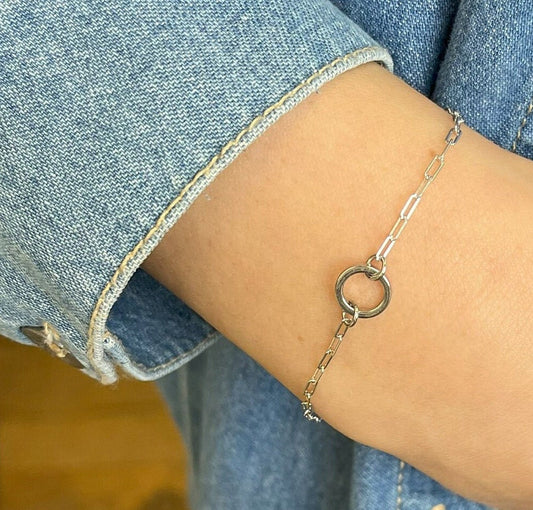 סט 2 צמידים: צמיד לינק כסף, צמיד הילת חישוק