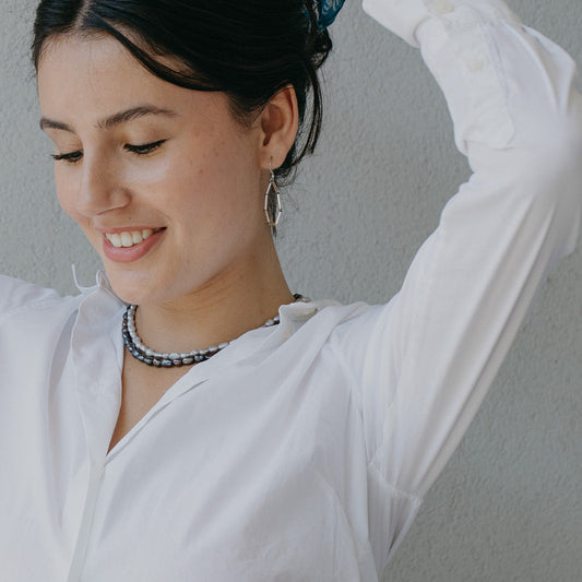 עגילי כסף ופנינה חישוק על קלאס