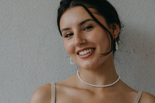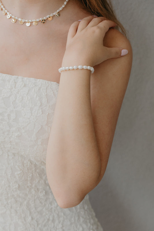 סט של עגילים וצמיד: עגילי פנינים ברק הטבע צמיד פנינה מהסרטים