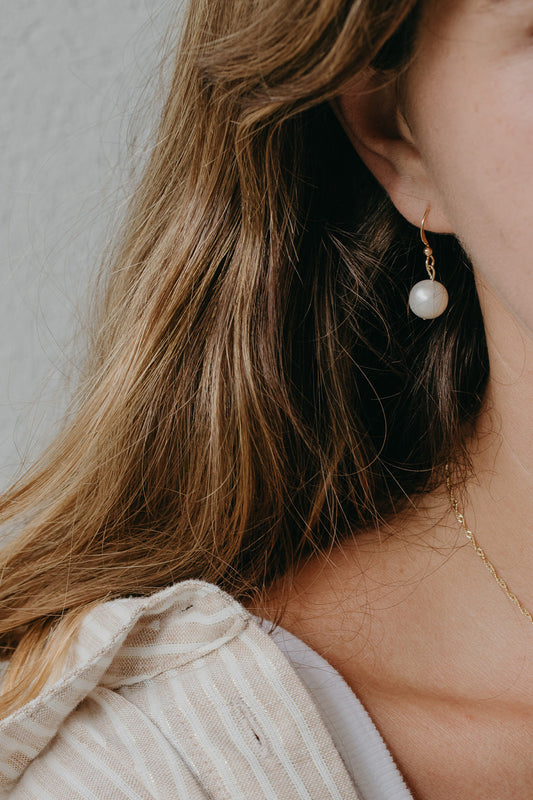 עגילי זהב ופנינה חישוק על קלאס