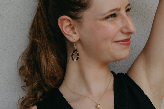 עגילי זהב קסם שחור ופנינה