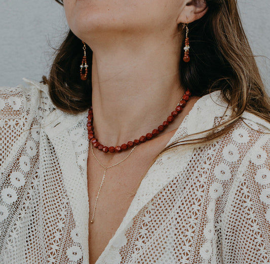 סט של שרשרת ועגילים: שרשרת פנינים טיפות על הרחבה ועגילי פנינים מרהיבים