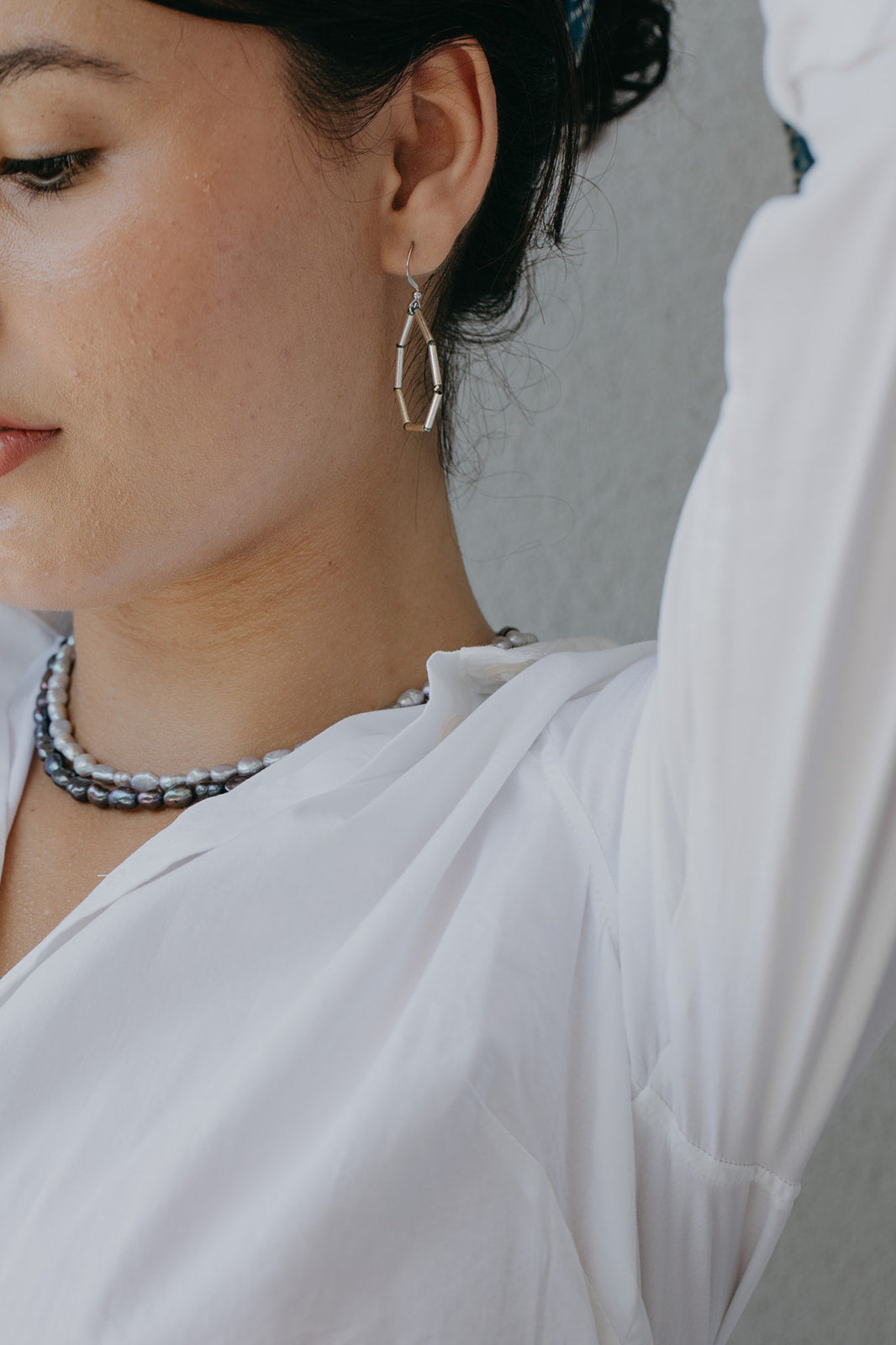 חומרים: עגילי וי זהב ציפוי כסף, צינורות דקים בציפוי כסף, חרוזים קטנים ירוקים מנצנצים