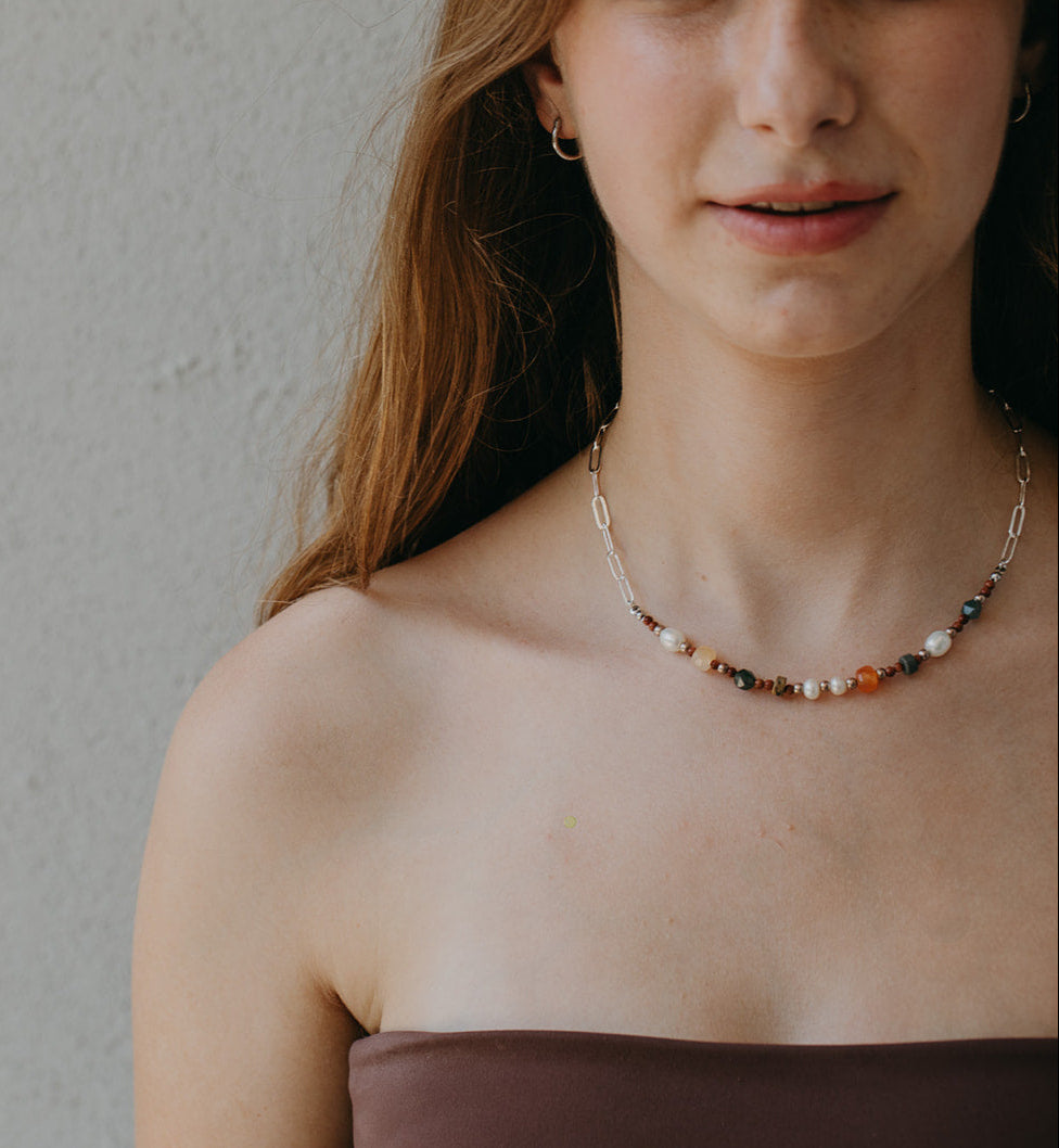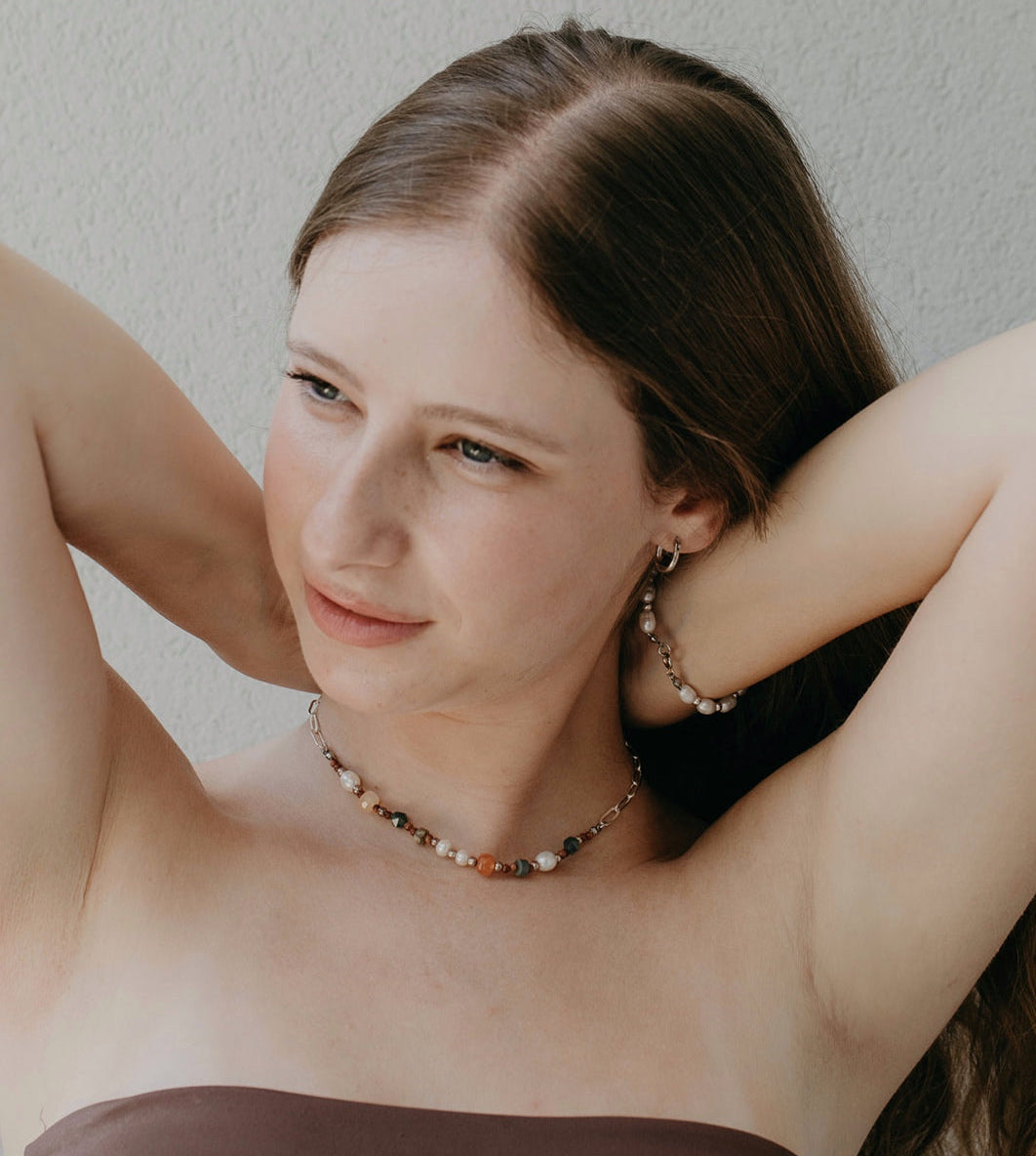 חומרים: חוליות כסף סטרלינג 925, אבן אגט פרסית כתומה טבעית, אבן טבעית פיקאסו חרוזי ג'ספרס, זכוכית אוסטרית נחושת שקופה קריסטל, פנינים טבעיים אמיתיים באיכות גבוהה