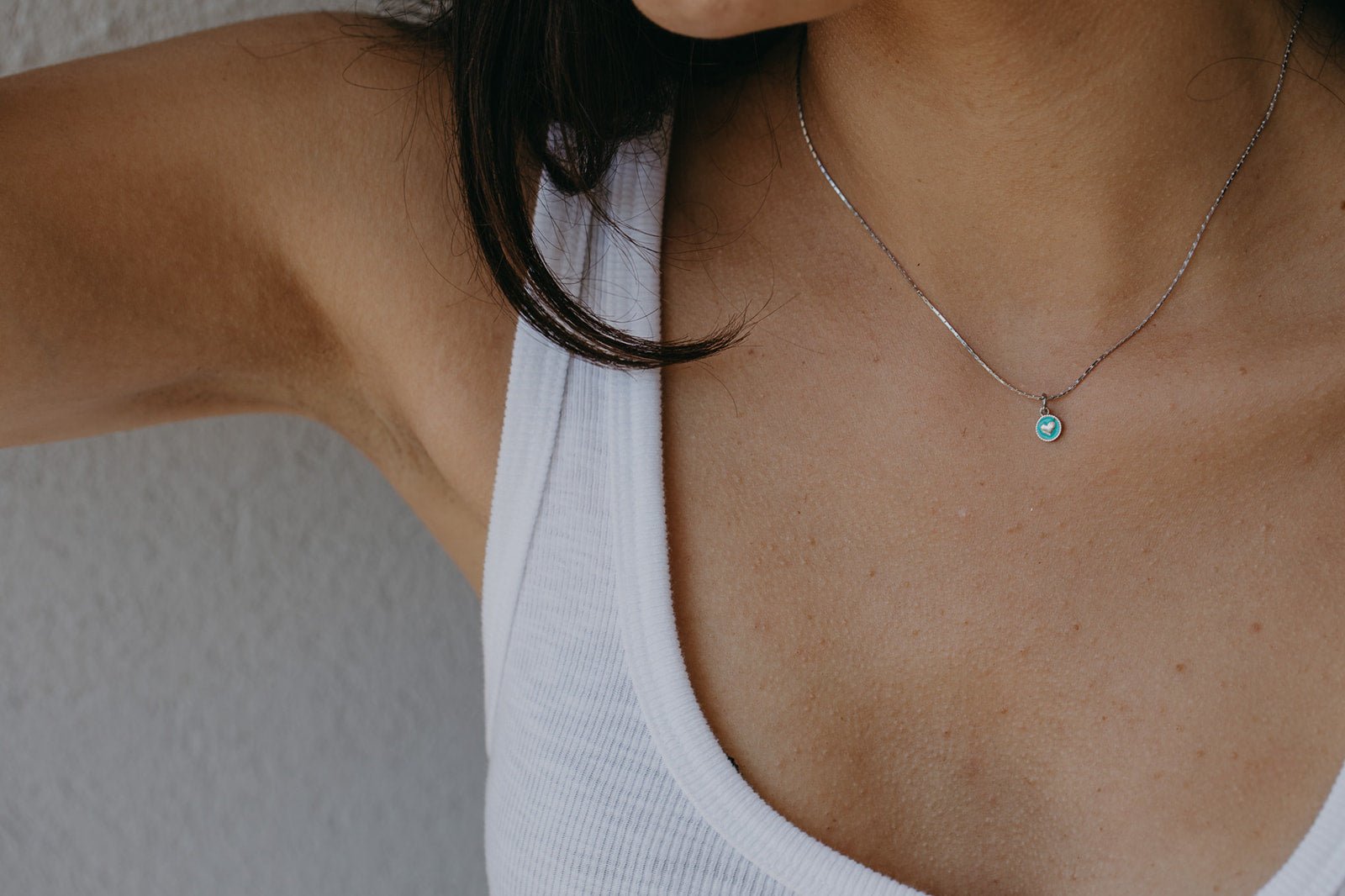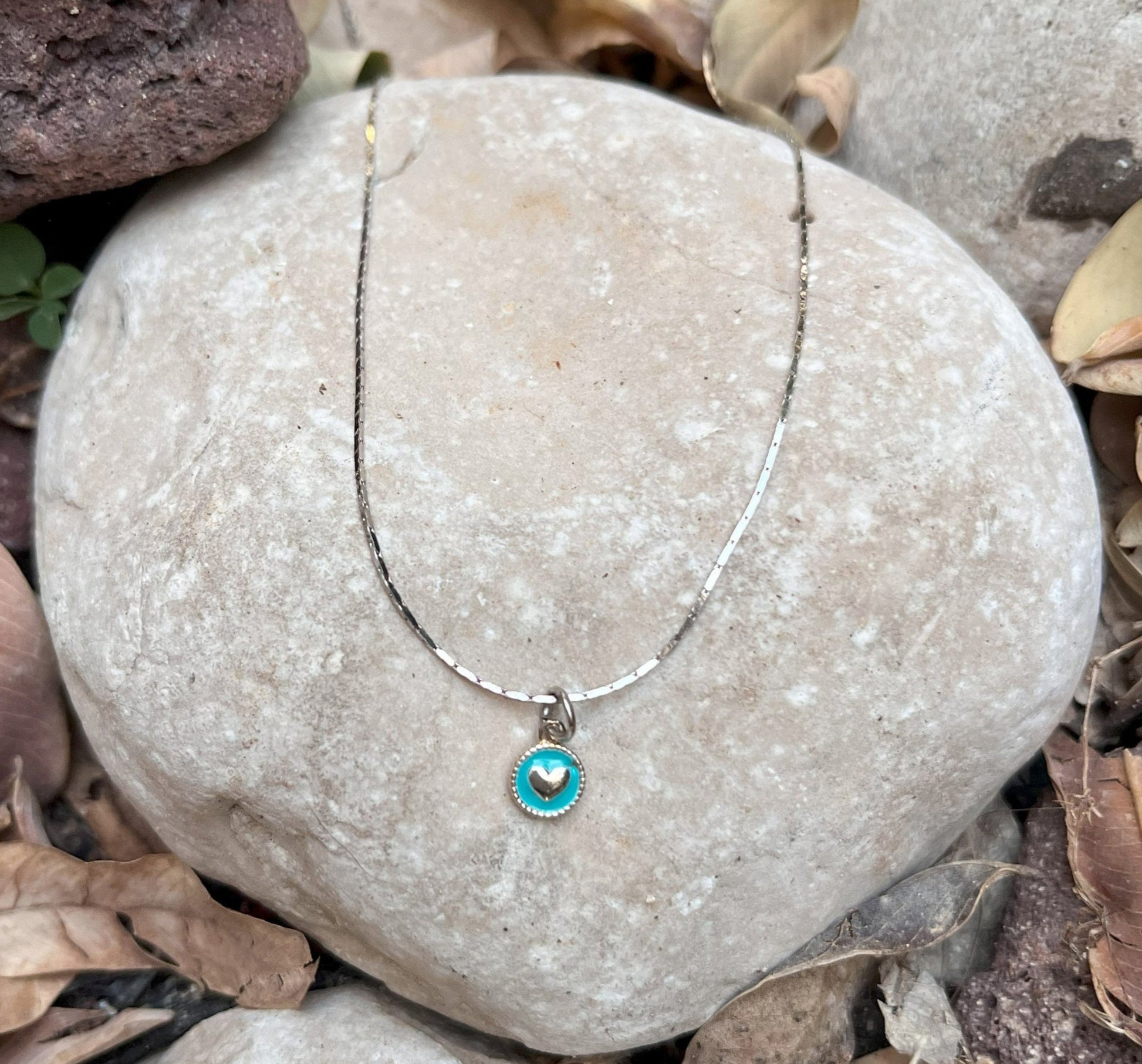 שרשרת כסף נצנוץ טורקיז- שרשרת כסף ותליון לב טורקיז קטן