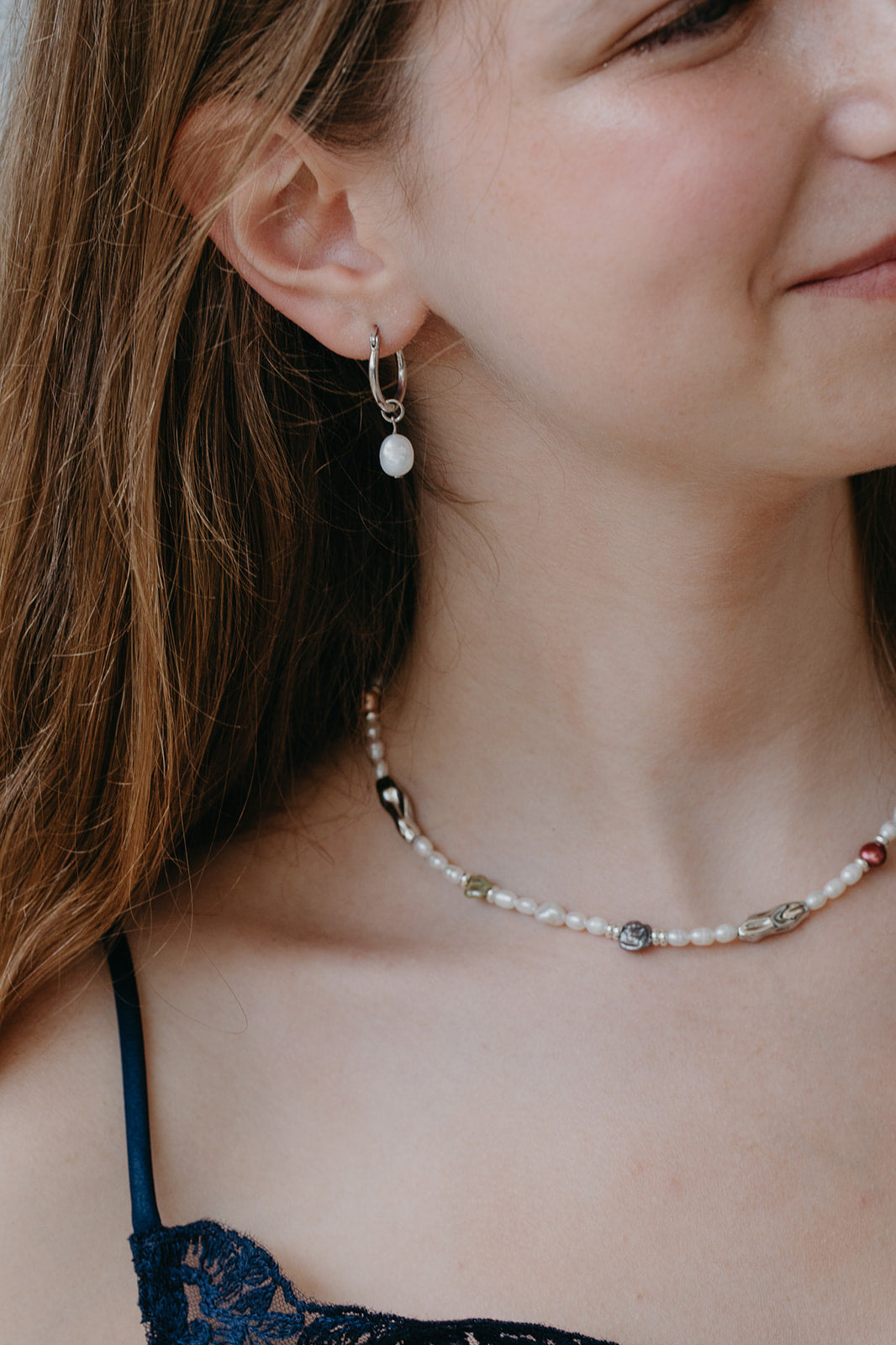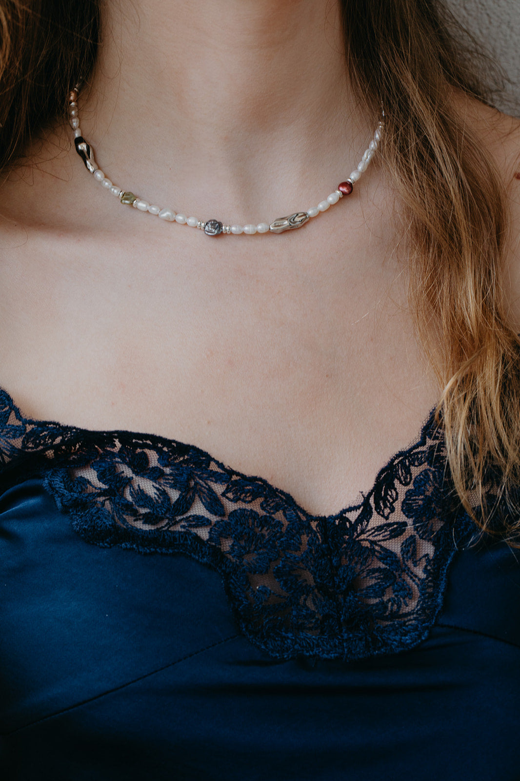 שרשרת פנינים צבעי אהבה משלבת כסף ופנינים ייחודיות צבעוניות