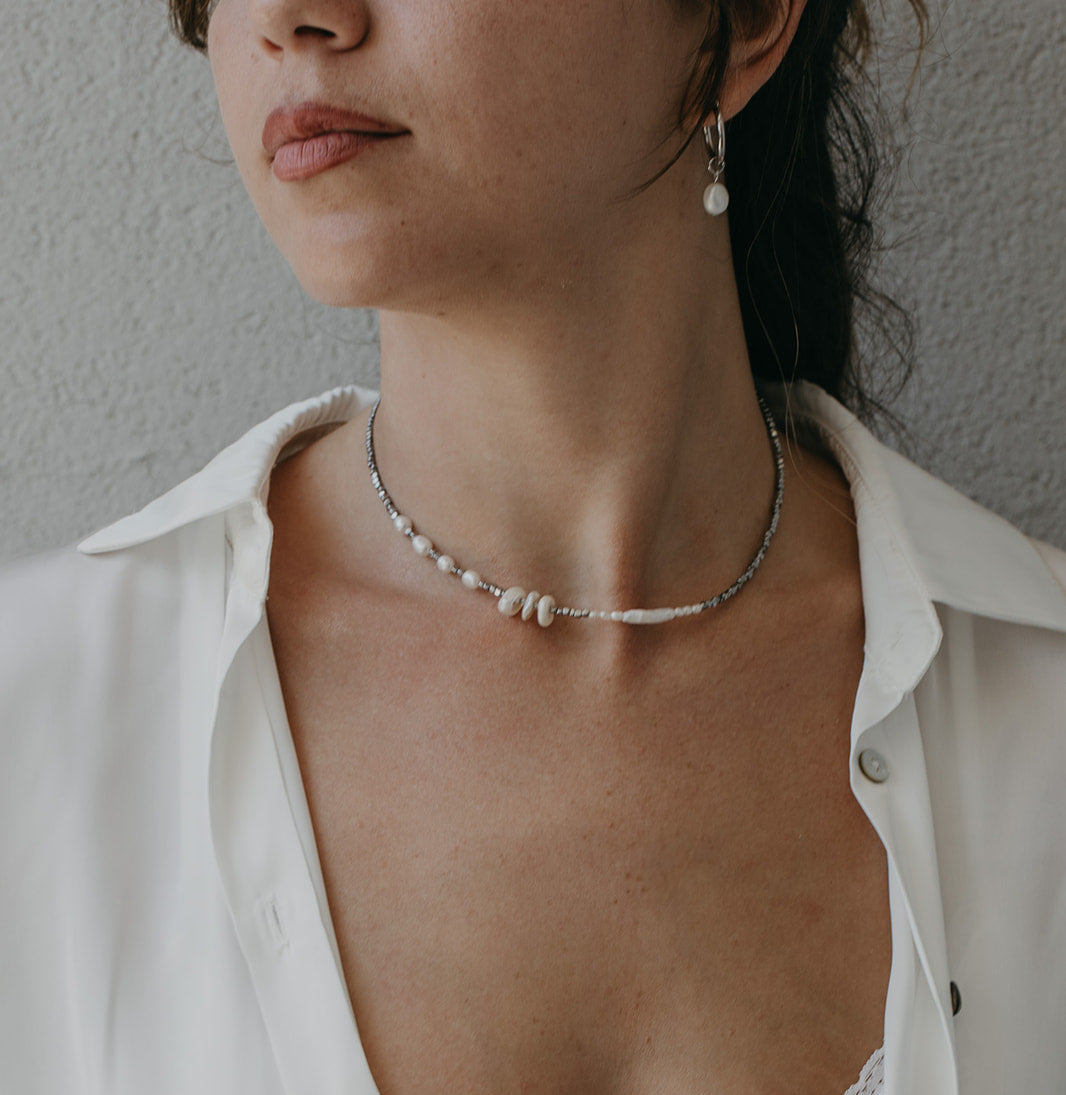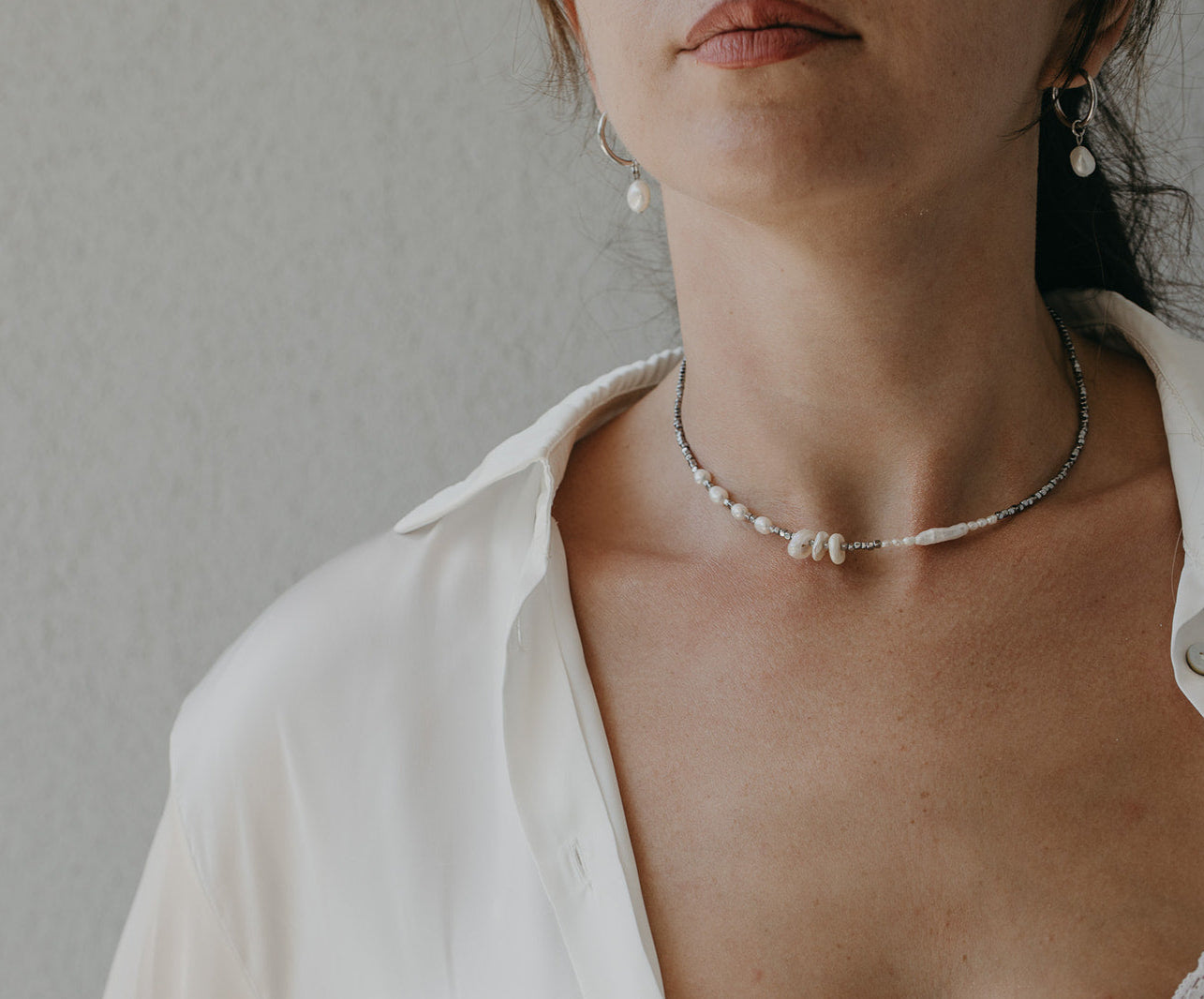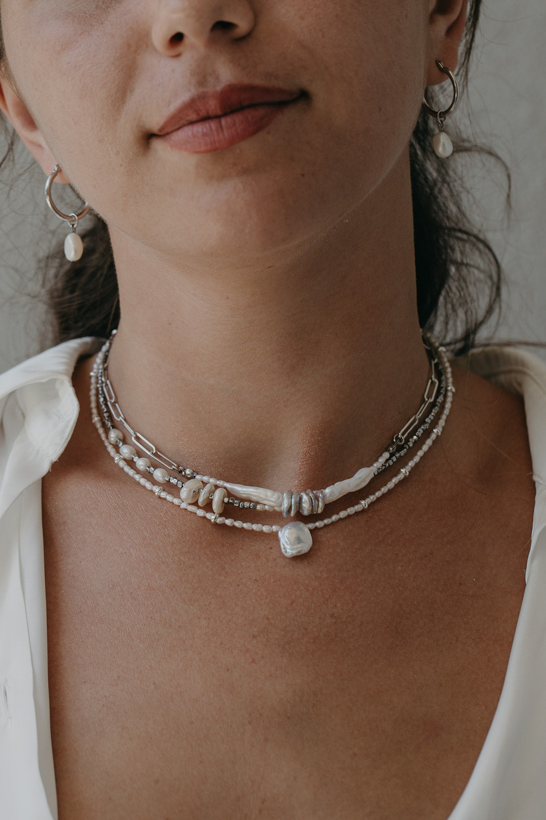שרשרת פניני יוקרה עם נגיעות של כסף-אור הירח