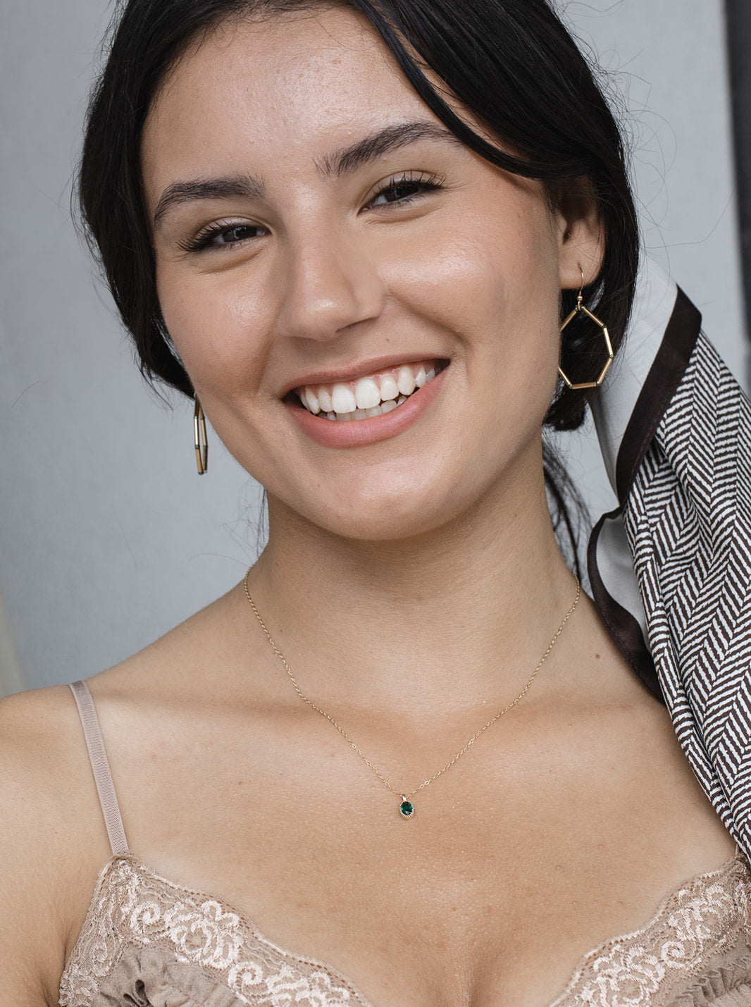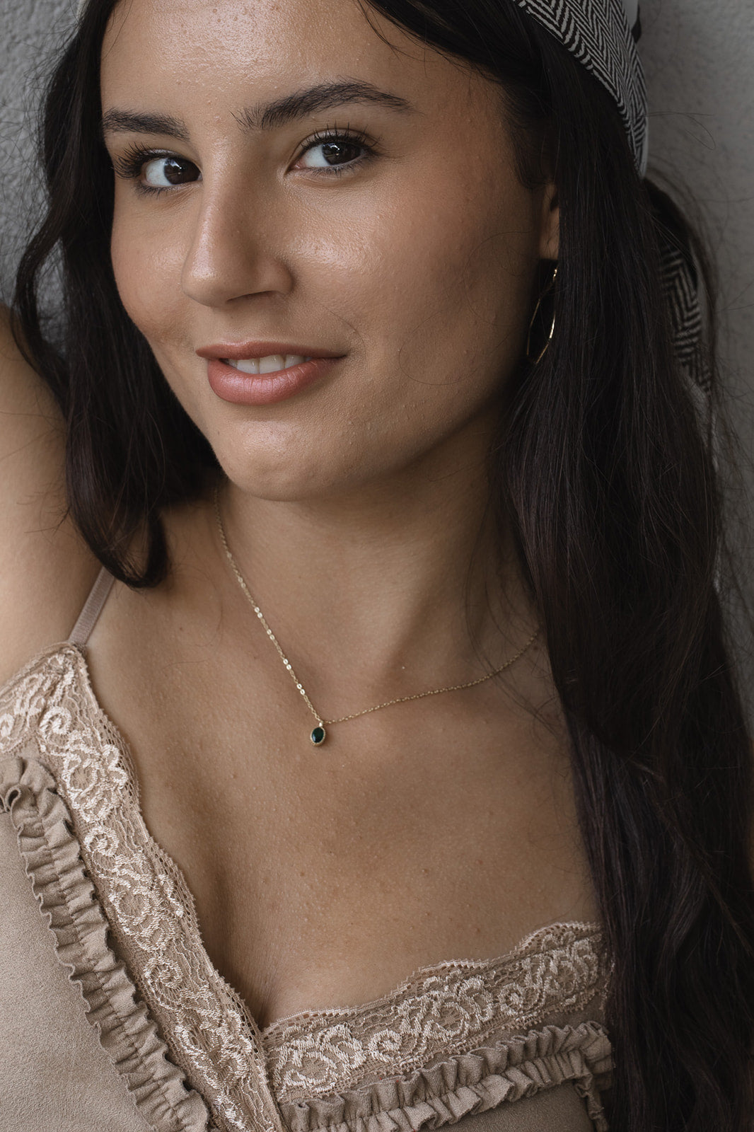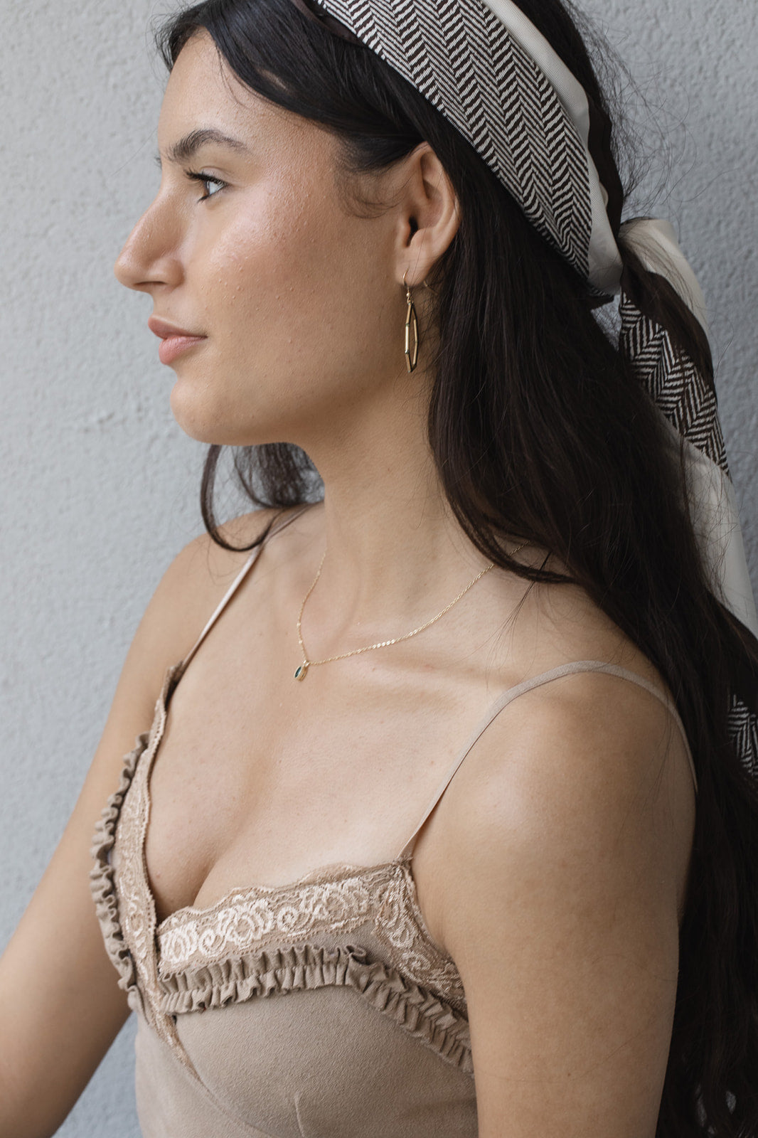 'חומרים: שרשרת עדינה זהב 14 קראט, תליון סטרלינג ירוק אמרלד וינטאג