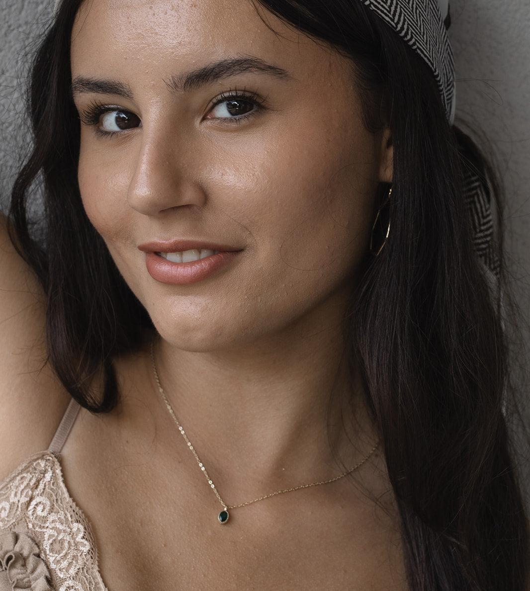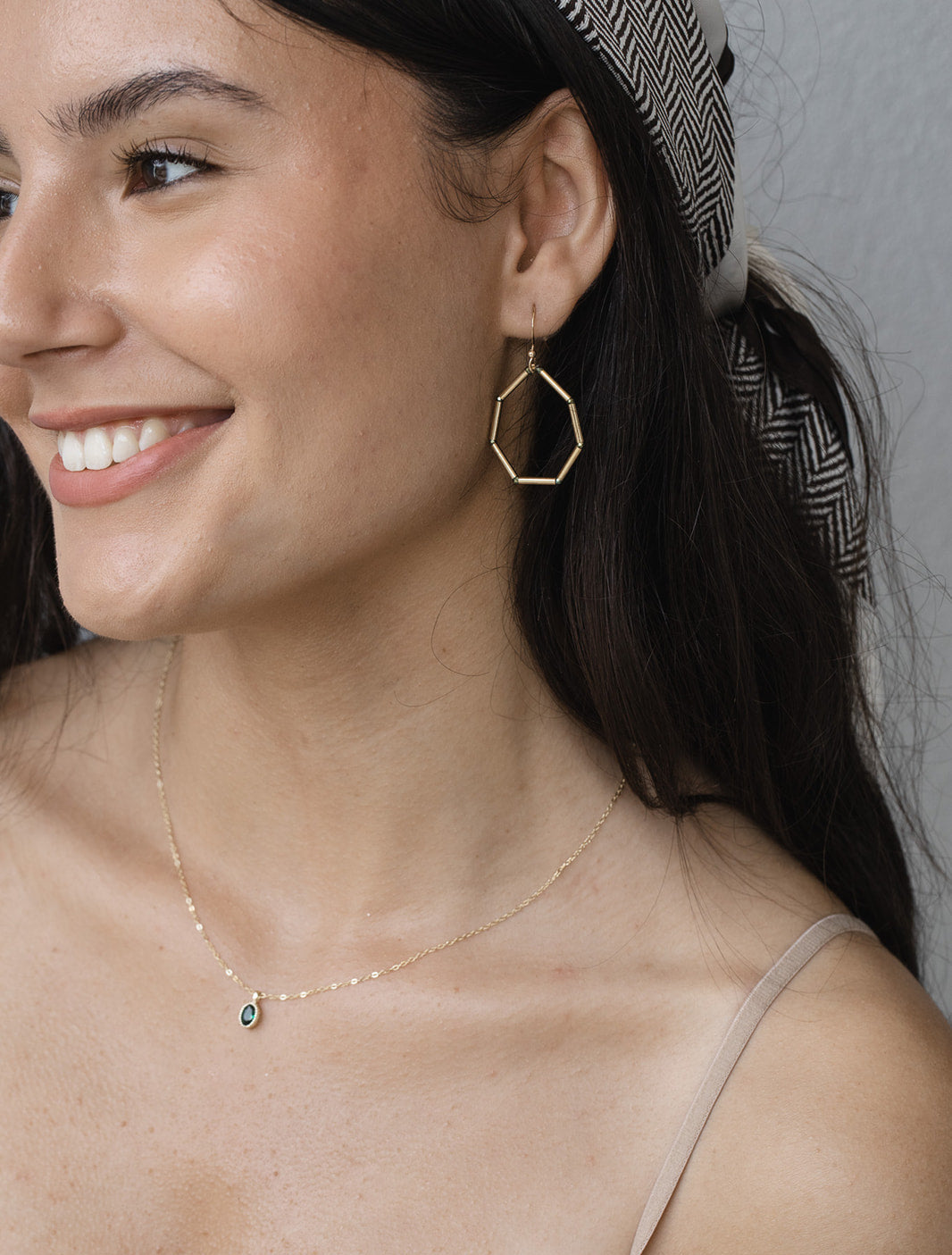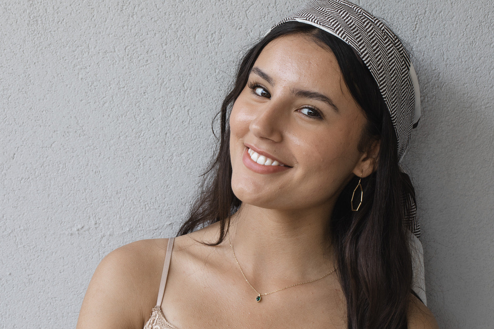'חומרים: שרשרת עדינה זהב 14 קראט, תליון סטרלינג ירוק אמרלד וינטאג
