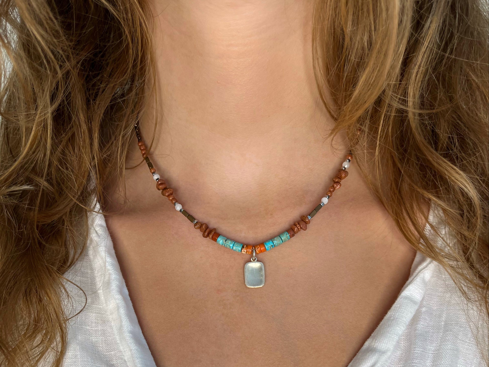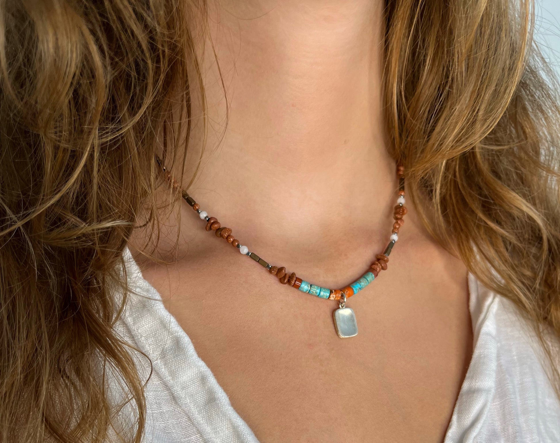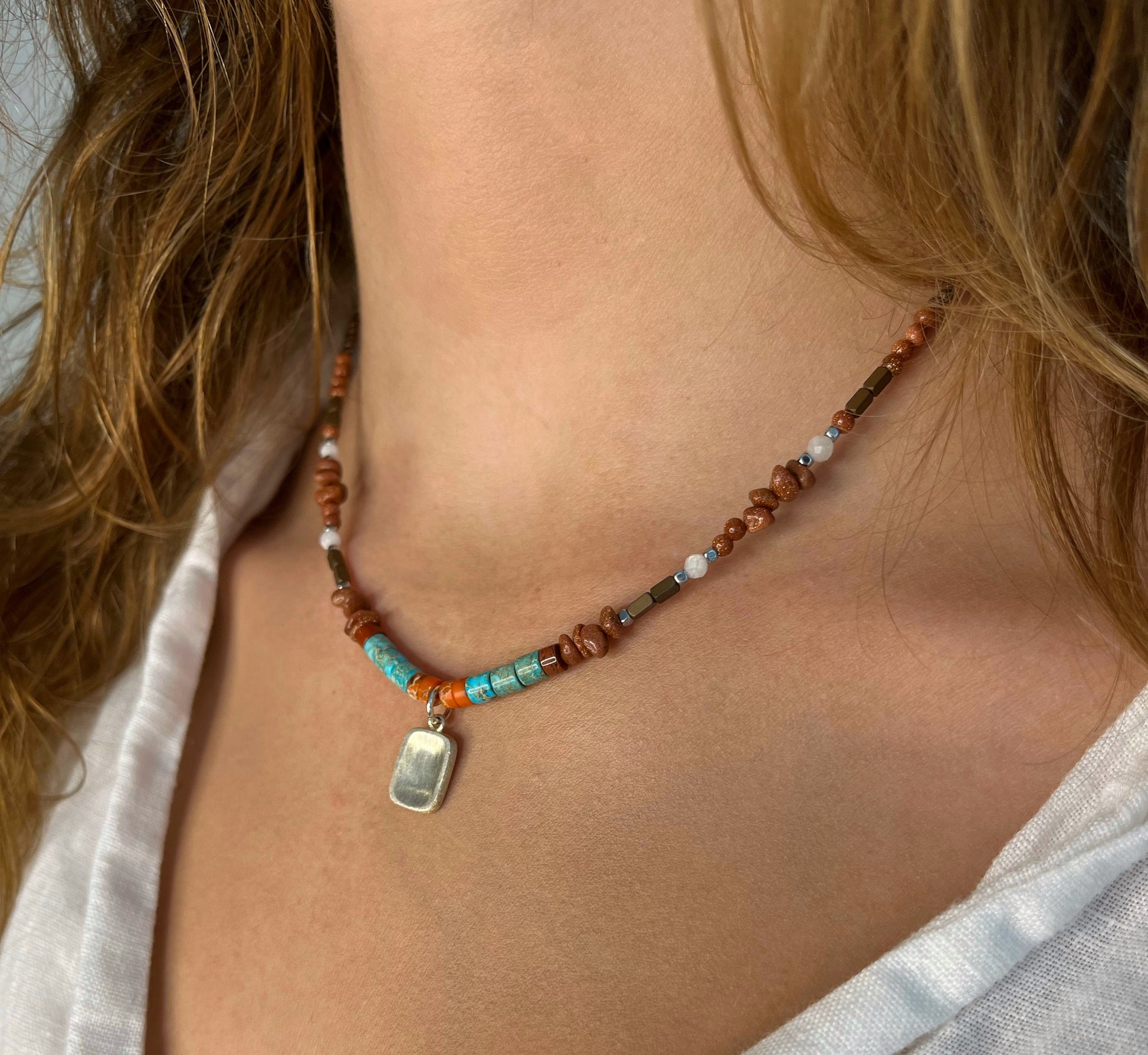 חומר: חרוזי אבן טבעית בצבע, תליון כסף סטרלינג